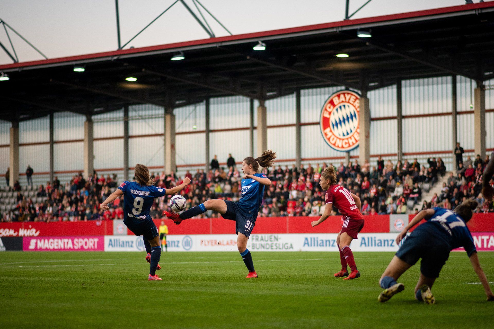 Topspiel in der FLYERALARM Frauenbundesliga. Für die Bayern stand so einiges auf dem Spiel, die Tabellenführung sollte verteidigt und ausgebaut werden doch zunächst mussten dafür die starken Hoffenheimerinnen besiegt werden, die unter der Woche eine tolle Leistung in der Königinnenklasse hingelegt hatten. Die Münchnerinnen starteten stark, doch die erste wirklich gefährliche Torchance erhielt die TSG durch Franziska Harsch, die eine Ecke nicht verwandeln konnte, da Laura Benkarth und Lea Schüller überragend regierten. Doch auch Martina Tufeković hielt ihrerseits ihre Mannschaft im Spiel, bisher war es eine Begegnung auf Augenhöhe. Kurz vor der Pause schlugen die Münchnerinnen dann doch zu. Linda Dallmann erobert den Ball, dann geht es schnell. Die Flanke kommt von Giulia Gwinn auf den Kopf von Lea Schüller. Und nun ja, die macht was sie am besten kann: einfach einköpfen (43.). Und auch beim 2:0 war die Situation eine ähnliche. Wieder presst der FCB früh, Dallmann erobert den Ball, passt zu Schüller und die schiebt ganz gelassen ein (61.). War das schon die Vorentscheidung? Nein, denn auch die Hoffenheimerinnen kamen nochmal über die Mitte und Nicole Billa erhält noch vor dem Strafraum den Ball und schließt ab. Der Ball segelt ins Kreuzeck und ist unhaltbar für Benkarth. Das erste Gegentor kassierten die Bayern ausgerechnet von Top-Stürmerin Billa. Das war der Anschlusstreffer in der 76. Spielminute. Doch die Bayern wollten sich diesen Sieg nichtmehr nehmen lassen. Wieder war es die an diesem Spieltag überragende Linda Dallmann, die einen tollen Ball in die Spitze spielt und die Stürmerin schickt, Damnjanović kann diesen noch nicht verarbeiten doch die heraneilende Lineth Beerensteyn schiebt zum 3:1 Endstand für die Münchnerinnen ein (90+1). Damit bleiben die Bayern unangefochten und verdient an der Spitze der Tabelle.