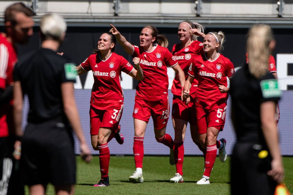 Doch in der 37. Minute waren es dann die Bayern, die sich entschlossen zeigten und demonstrierten, was sie können. Kapitänin Lina Magull tritt zum Freistoß an. Die Flanke kommt vom linken Mittelfeld, Marina Hegerin kommt im Strafraum nicht ran, Lena Oberdorf gewinnt zunächst das Kopfballduell. Doch der Ball landet sofort bei Sydney Lohmann. Die überlegt nicht zweimal und schießt entschlossen ab. Der Ball wird von Oberdorf noch abgefälscht und ist somit unhaltbar für Schult im Wolfsburger Tor. 1:0 für die Münchnerinnen.