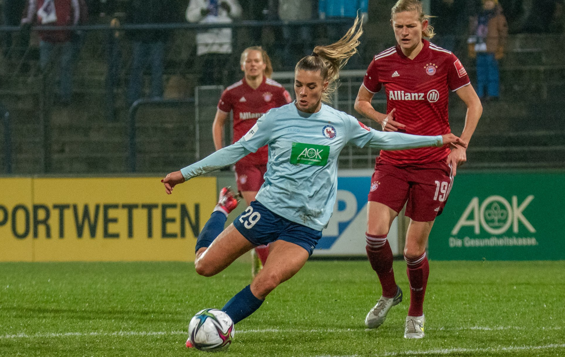 Selina Cerci (li.) kurz bevor sie ihr Team mit 1:0 gegen den FC Bayern München in Führung bringt.